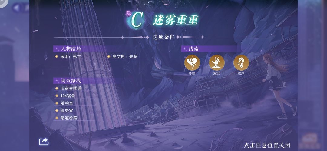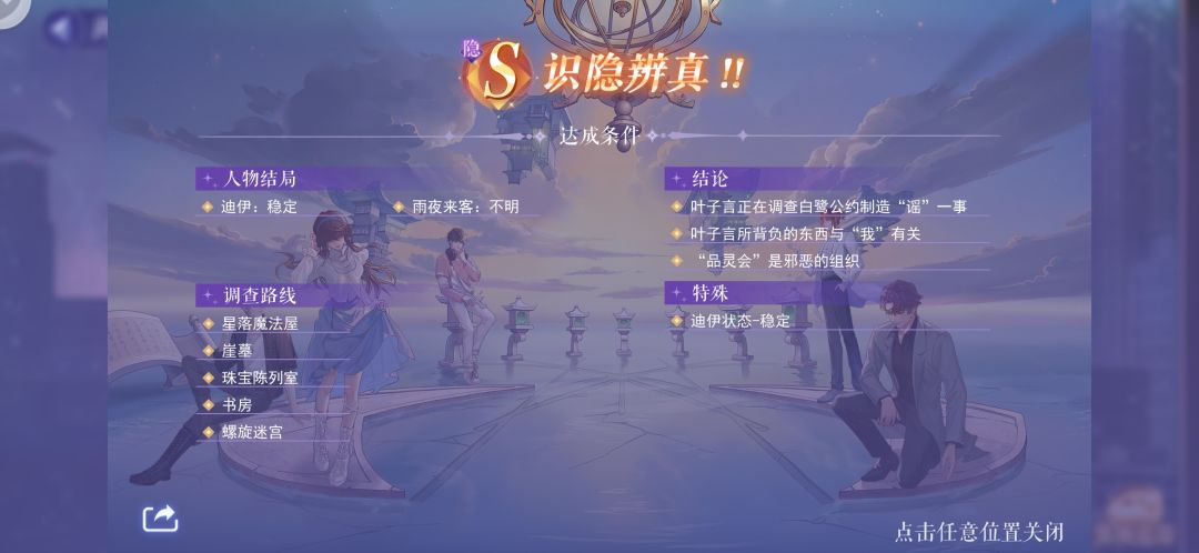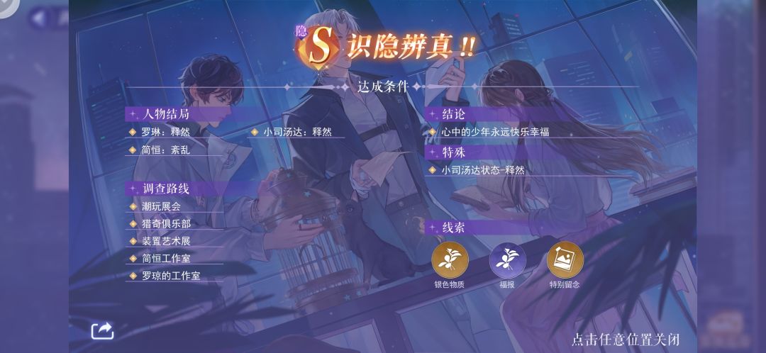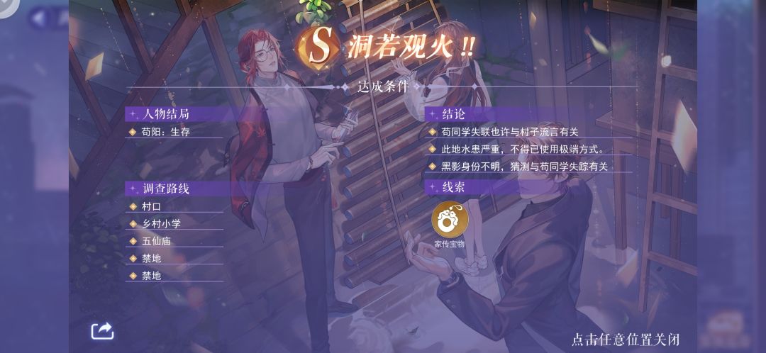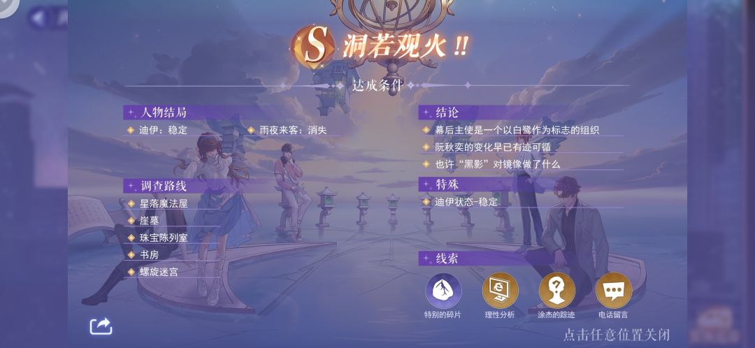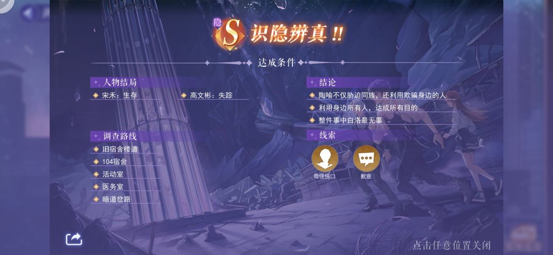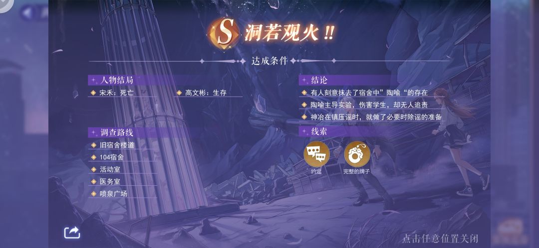 我通关后路线和线索的截图,卡关的人可以看看,只有S关和隐S关