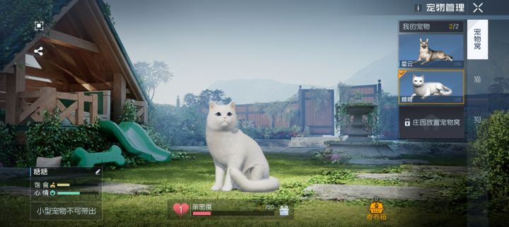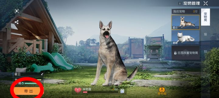1.我们先打开宠物管理,会发现狗狗狗狗可以带出而猫猫不可以