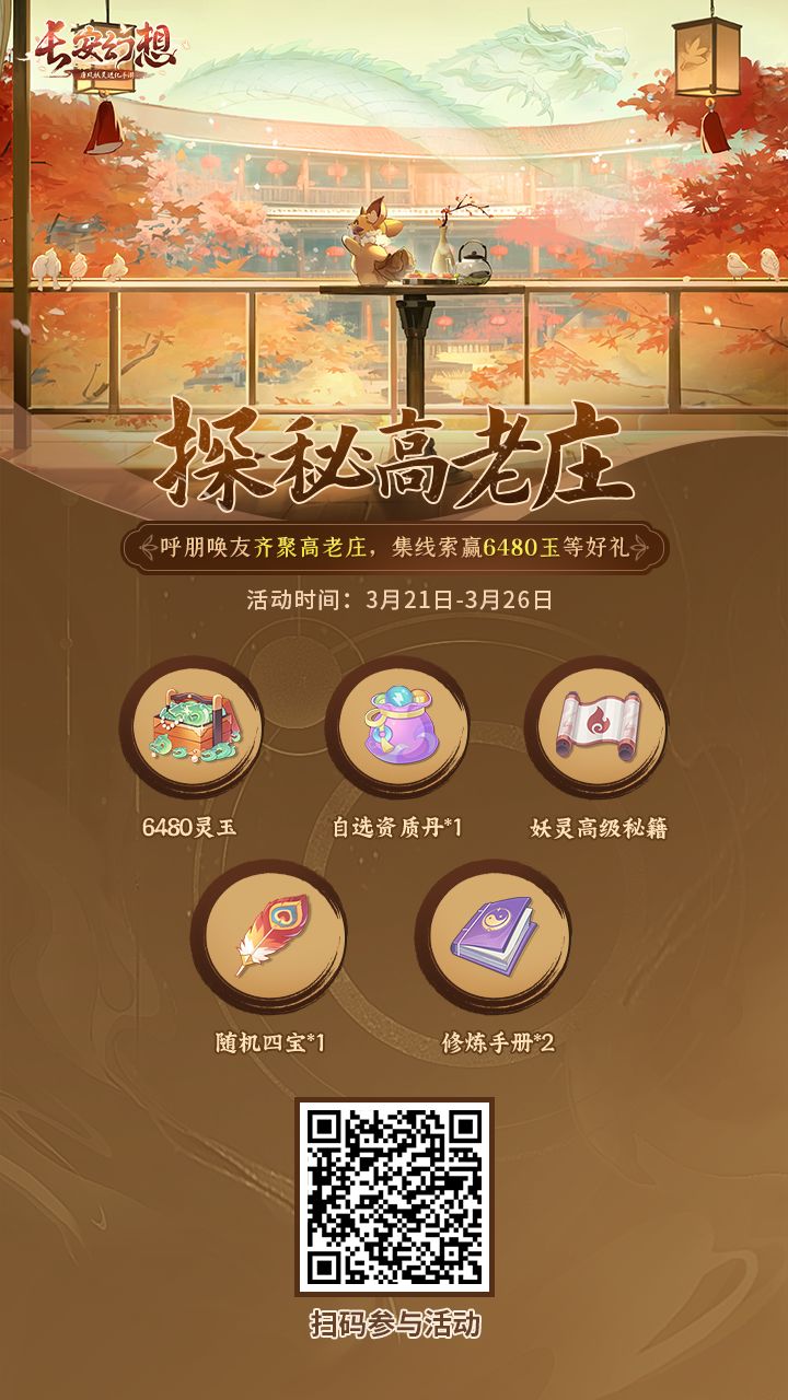 邀请好友一起探秘高老庄,即有机会获得高级妖灵秘籍、自选资质丹,还有三份6480玉转职基金等你赢!