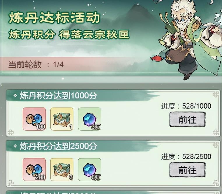 炼丹活动的最核心的玩法就是用平时所获得的炼丹材料,在活动期间来炼丹获取积分,达标到一定的积分领取奖励。
