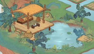 鱼池(钓的鱼都会自动收纳在这里,点进去把鱼从鱼篓拖到池里会增加舒适度,鱼的等级越高对应舒适度越高)。
