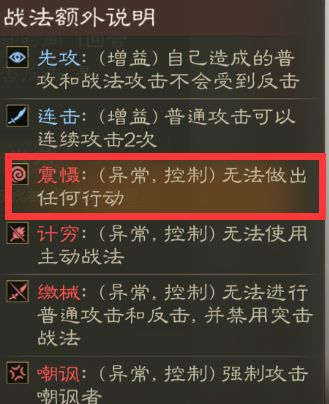其自带战法可以归类为单体控制战法,不仅有不错的伤害期望,而且攻击后有50%的概率会震慑敌方,让敌方在一回合内无法执行任何操作,只能傻愣愣地站着。