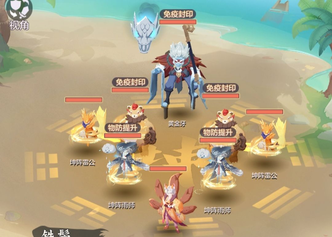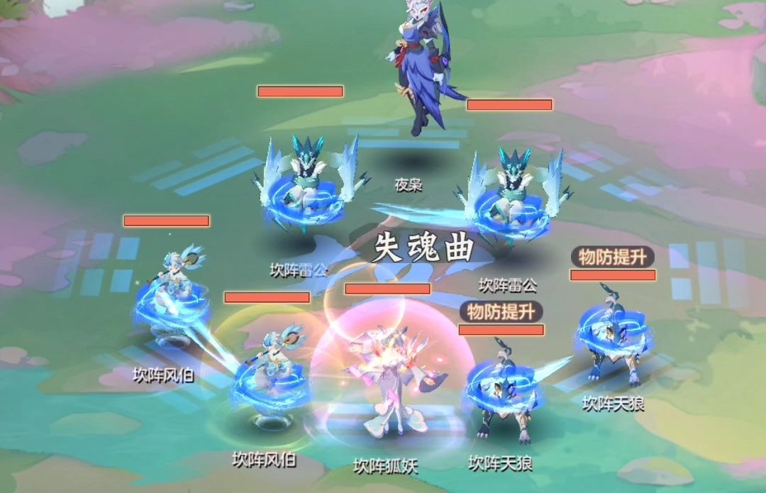 水阵会给boss回血,所以只能优先击杀小怪。青丘封完狐仙同样的给集火目标上幽花就行。根据阵容法系多就杀天狼,物理多就先杀雷公。