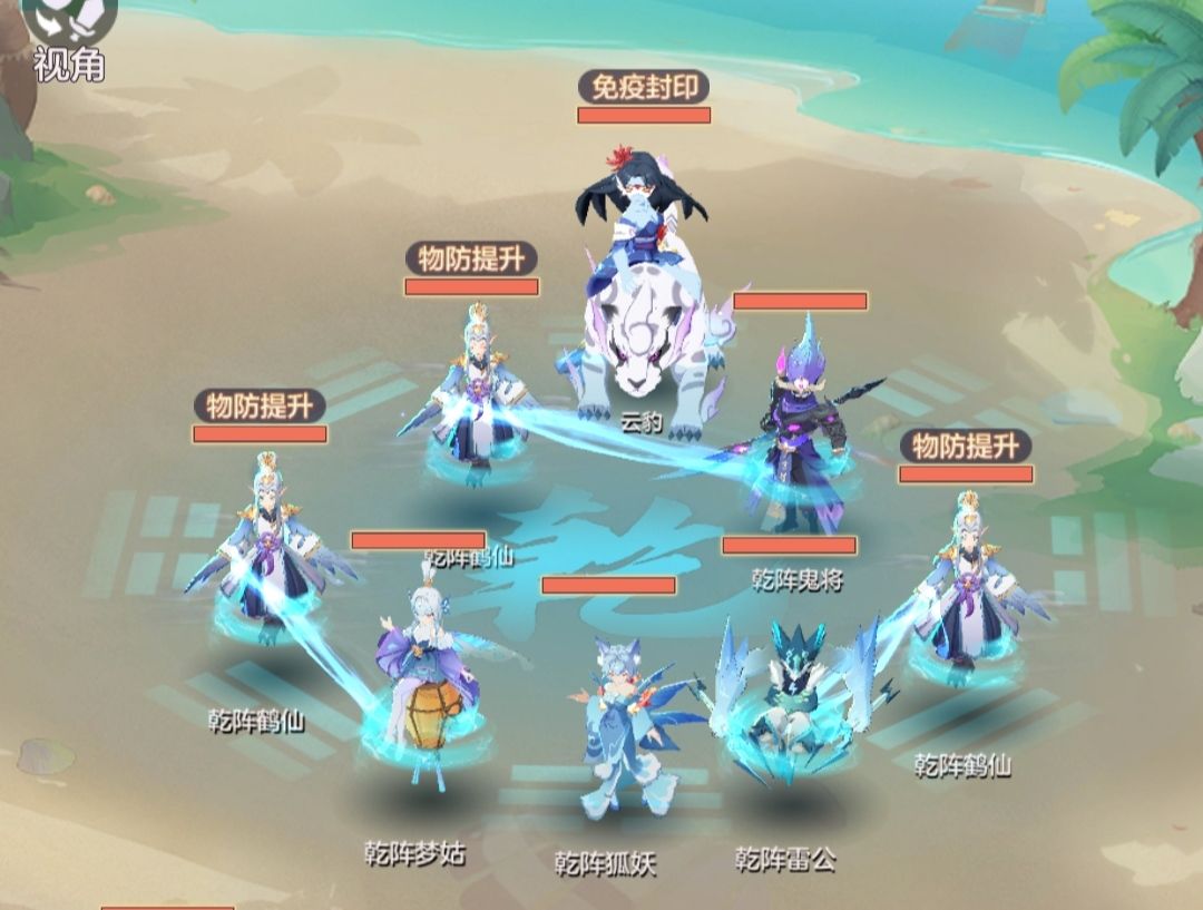 唯一有要求的阵。群攻宠无所谓,单体宠必须带偷袭,可以用玄月护符中的低级偷袭。熊的反击伤害过高,强杀也不是不行,换来的结果就是必须嗑药,想要无药击杀就是要么上群攻宠,要么上偷袭单攻。