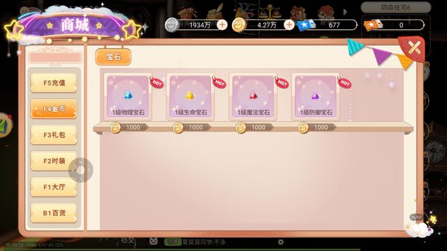 宝石主要获取途径有两种:一种是挑战怪物大厦,另一种则是金币购买,有条件的可以在新区刚开服的时候多建几个小号刷金币,从交易系统往大号源源不断的输送金币,只要不缺金币多提升宝石等级,就能轻松的在前期碾压大部分玩家。