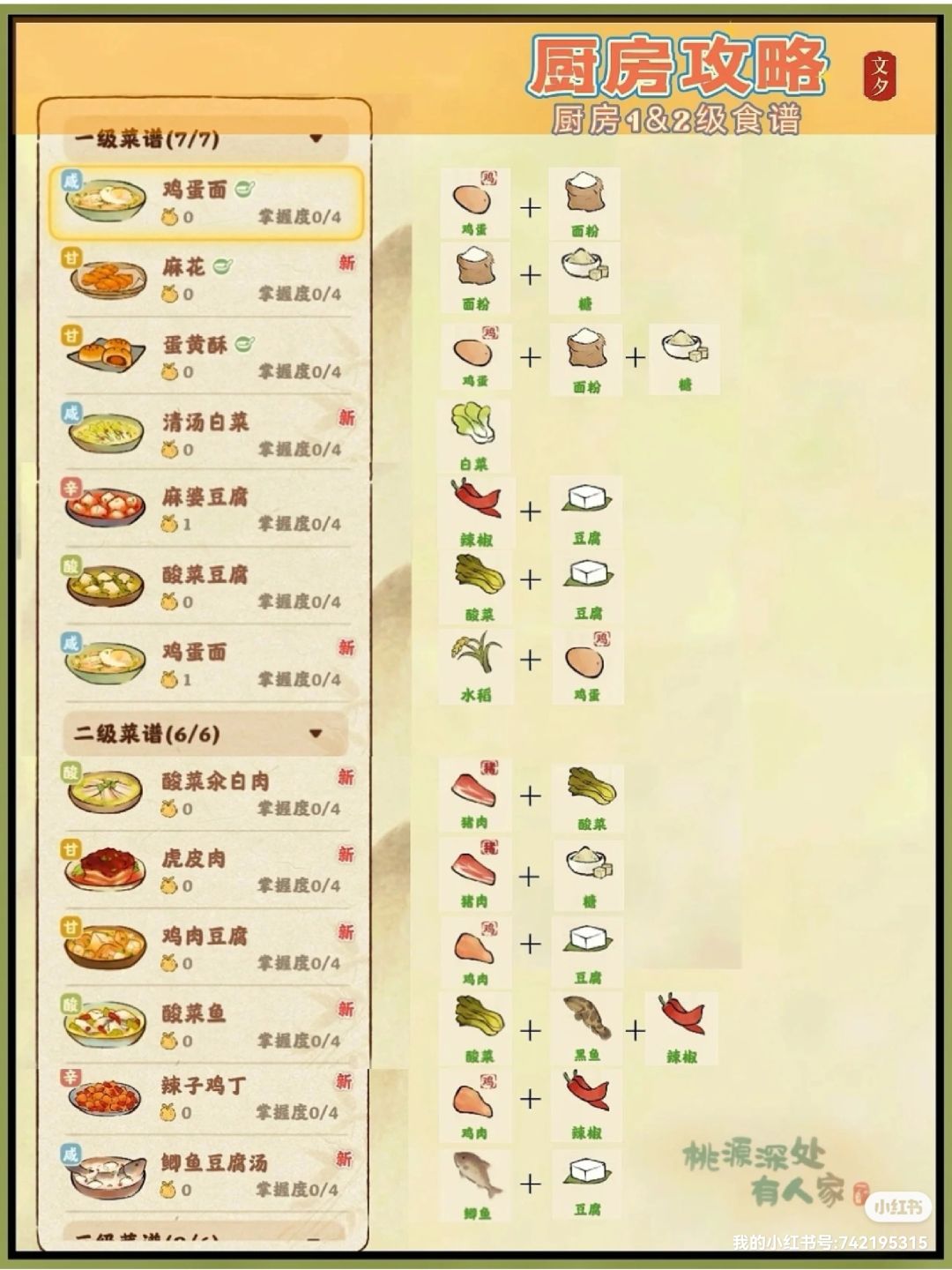 厨房食谱1—6级攻略