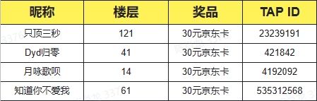 获奖的小伙伴请截图自己的tap个人主页界面的回复详情页,添加qq:732531259领奖哦