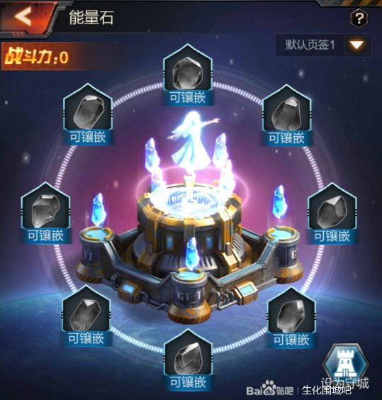 能量石殿堂中每个页签有8个槽位,可镶嵌7种能量石,分别为刀兵、盾兵、连发枪、狙击枪、近程车、远程车、生化人能量石。
