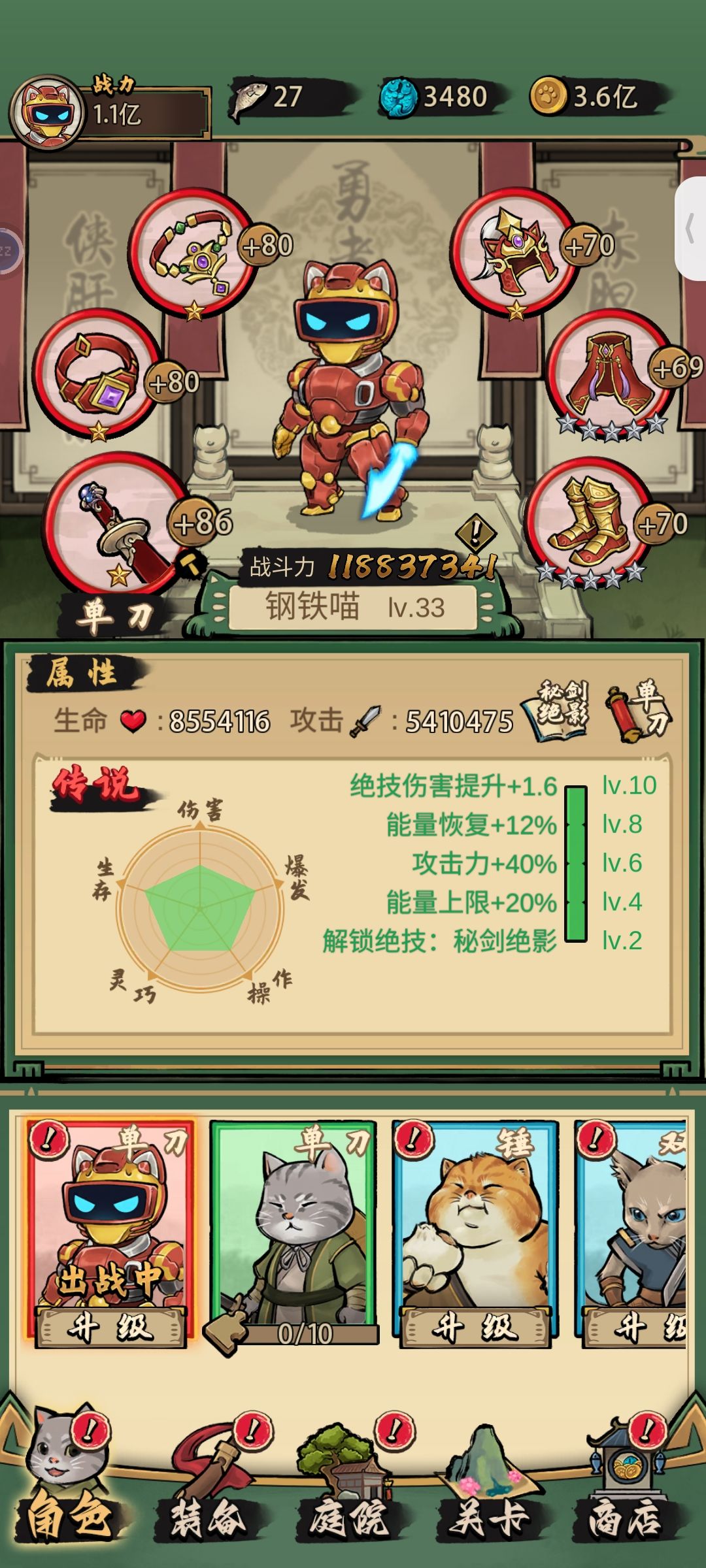 总的来说就是看广告基本上就能玩儿。这里面装备最牛逼,把装备升起来。随随便便上亿战力。之前玩了一次,两天才玩到300万。莫名其妙一直闪退玩不了,从头开始玩的,三天内通关。无尽试炼用我这一套技能站着都能过。全程不用动,除了捡经验。闯关也是找个角落站着无限放风和电。随随便便超三倍战力闯关。