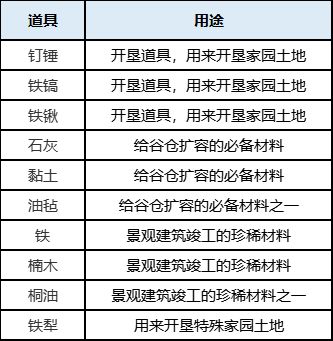 在蒲公英小队带回的收成中有多种用途的材料,各种特殊材料我放在表格,大家自取哦~