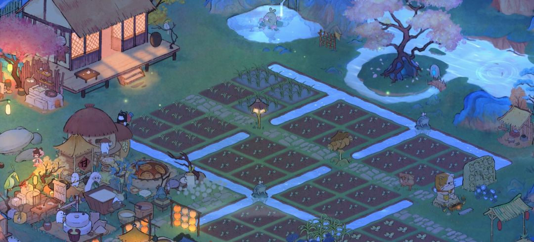 本来想把农田和水道完美结合的,但后来发现地图开的太小很多东西都放不下了,索性修改了一下,缩小了部分水道,左边的工作区用石路隔开,最下方农田想着用栅栏隔开区分,但我真的没钱了,呜呜呜。