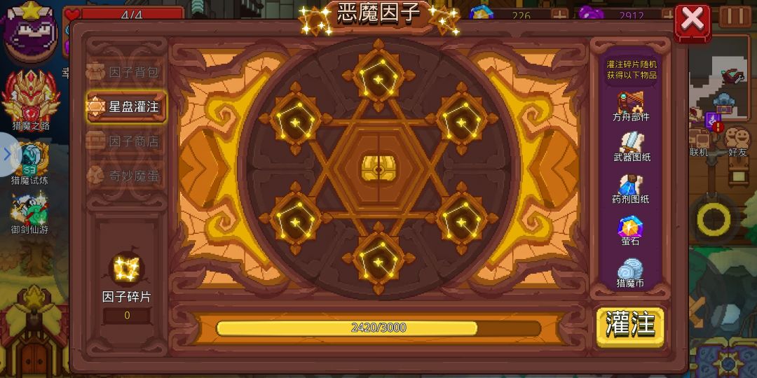 恶魔因子可以在章节2使用,放入三个因子就是难度二,多放几个就是难度三,恶魔因子可以分解,分解后可获得碎片,碎片可以提升格子,从而解锁难度,恶魔因子的获取方式是,一购买,二扭蛋,三冒险,三是主要途径,难度越高获取的奖励越好,获取的因子也同样提升, 因子分为邪术以及金牙,这两种可以提升卡牌,或者获取卡牌,就算你没有这个卡牌你也,可以通过集齐碎片来获得,这种不能分解,分解后你的损失很大,其他的不管品质是不是金色,都可以分解,萌新前期只需要蹭就行,或者加入官方群以及一些玩家群,让他们带着你玩就行了
