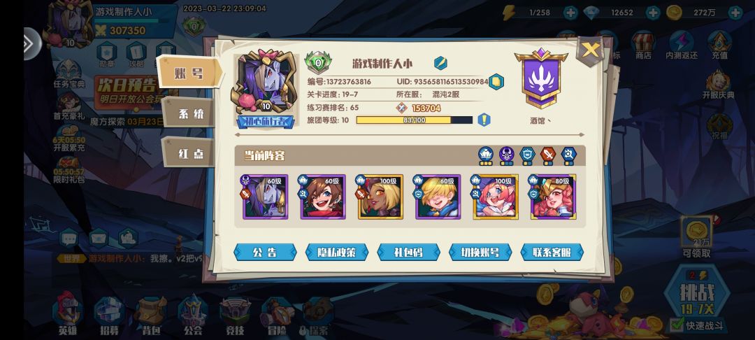 今天是开服第九天,发个零氪现状。接下来上图: