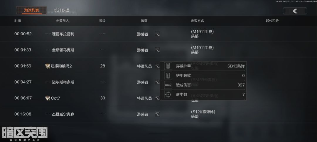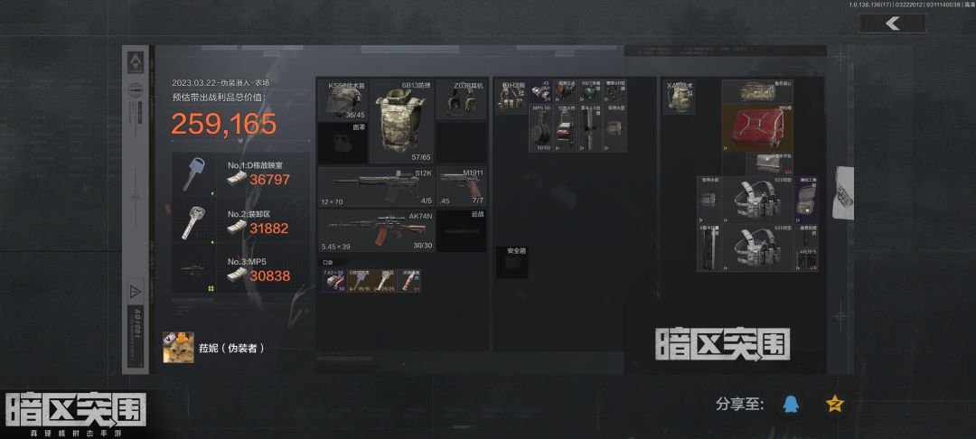 一个四套,满改的mp5,全是达姆弹,上去看了一眼发现这小子噶了一地的玩家,但明显看我是伪装掉以轻心了。可以在击杀界面看到,7发打肉,哪怕是一级的LP弹这种弟弟弹,也能击溃一个玩家。这把也捞了25万肥肥撤离了。