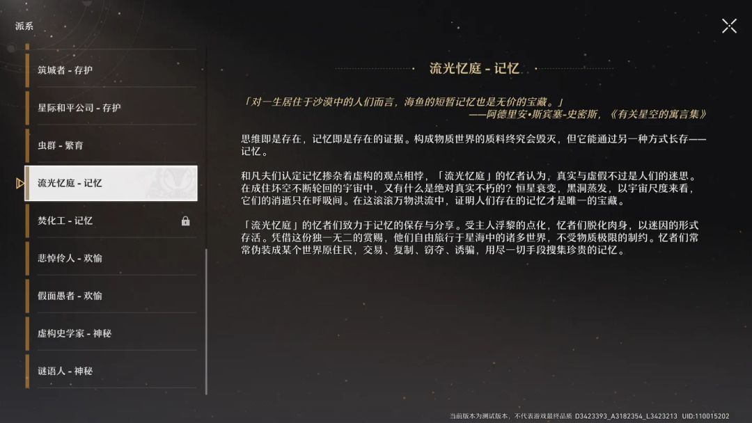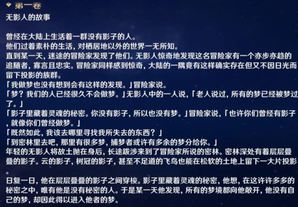 原神的《千夜故事集》描述得更为直接:“梦与影子与此在的实存一一对应”。“此在”是海德格尔创造的词,指向在时间中存在的人[10]。我很想在此展开有关存在、时间、熵、诺斯替与人的物理哲学讨论,但碍于篇幅所限,只能找机会再议了。我们还是讨论回星穹铁道的问题:如果说宇宙是生成源的流溢、影子、梦,那么什么才是真实的?记忆吗?