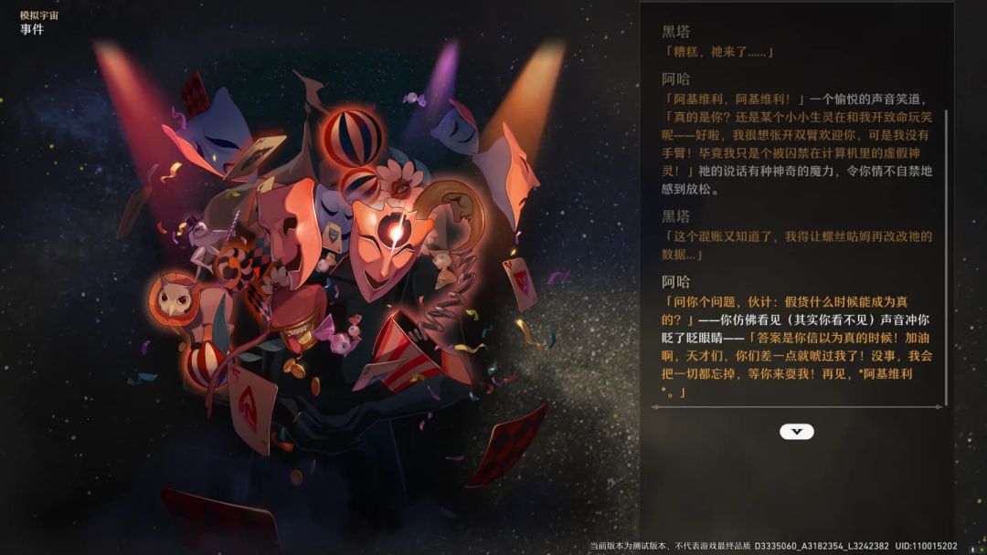 “假货什么时候能成为真的?答案是你信以为真的时候!”欢愉星神看似调侃和嘲讽的话语里,或许直指宇宙的真相:只要你相信,幻想的力量就可以化虚为实、梦想成真。宇宙就是一场虚数的大梦,而黑塔的模拟宇宙正是那影之影、梦中梦。