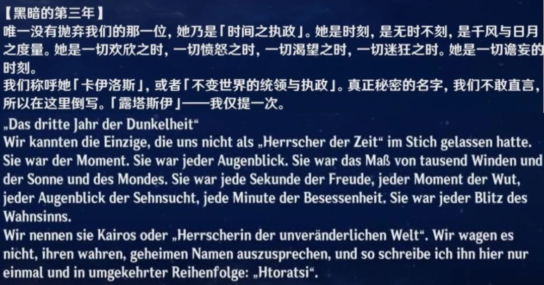 在“崩坏宇宙核心设定从哪来”的上期讨论中,我们聊到了星铁的“星神”和原神的“执政”是近义词。具体一点,就是星神的英文Aeon包含了执政Archon的意思[1],但不知道有没有观众注意到了上期的注释:执政的德语Herrscher就是崩坏3的律者。