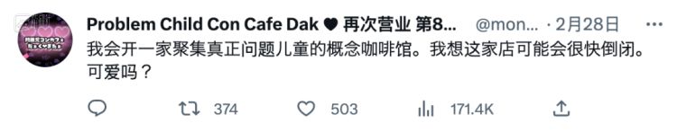 在这样的情况下,轰轰烈烈的宣传活动持续了数十日,人们的期待被吊到了最高值。在日本的社交媒体上,「问题儿童咖啡厅」数次登上热搜,网民最常见的反馈是“感觉有趣”和“想去”。