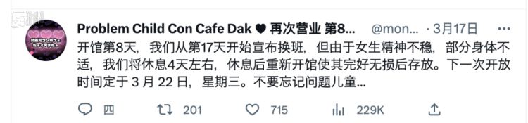 在呼喊声下,「问题儿童咖啡厅」在短暂的闭店后又开始跌跌撞撞地运营,虽然仅在数日之内,几乎每天都有“小惊喜”,但截至目前,它至少还