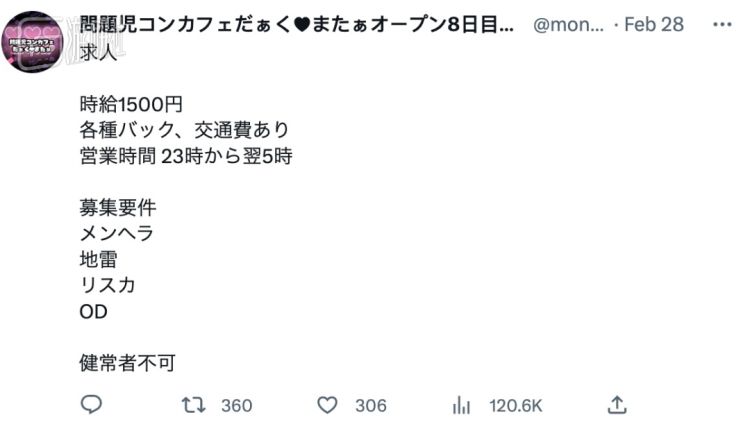 时薪1500日元,健全人不行。只能是“地雷女”、精神病患、自残爱好者、药物滥用者。