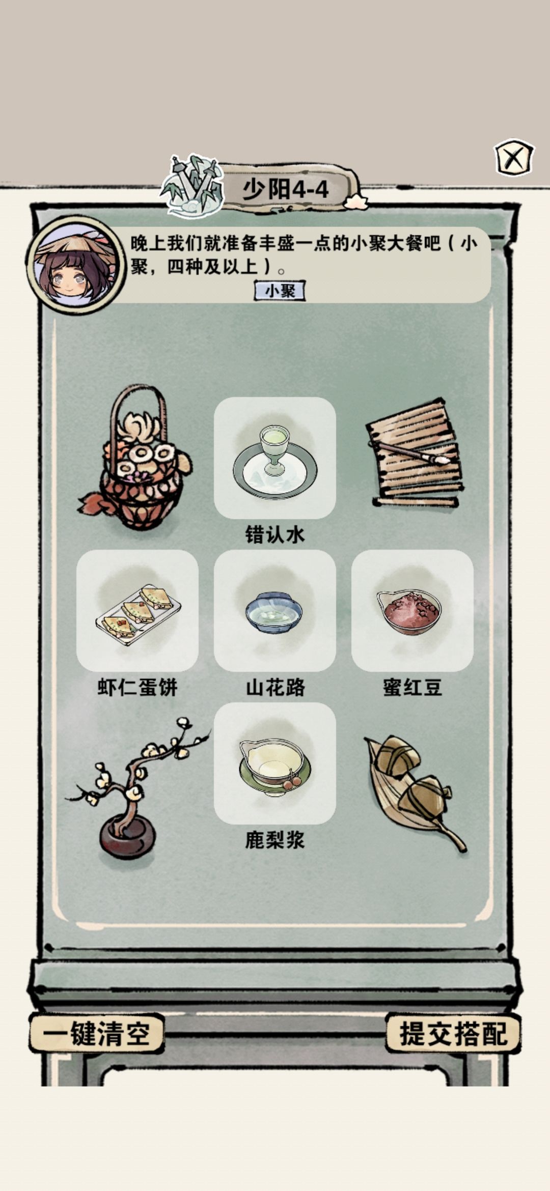 食方搭配并没有标准答案,不需要严格执行。比如4-7只有状元糍、桃花虾丸和花枝丸含“松软”tag,但要是这三道食谱等级较低、加上本身这三道食方的阶级也低就容易卡关,把这两个位置换成高阶食谱就过了(等级数字一致的情况下,根据食方名字的底纹颜色也有区别,紫>蓝>绿>白)。