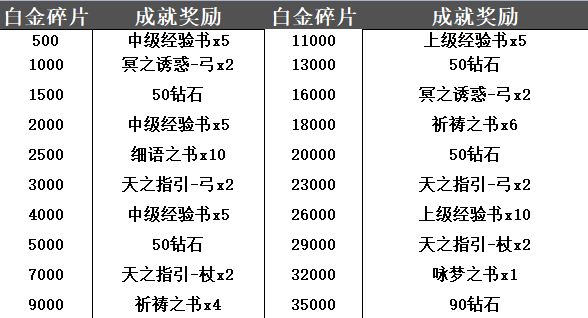 🔹【白金碎片奖励】: