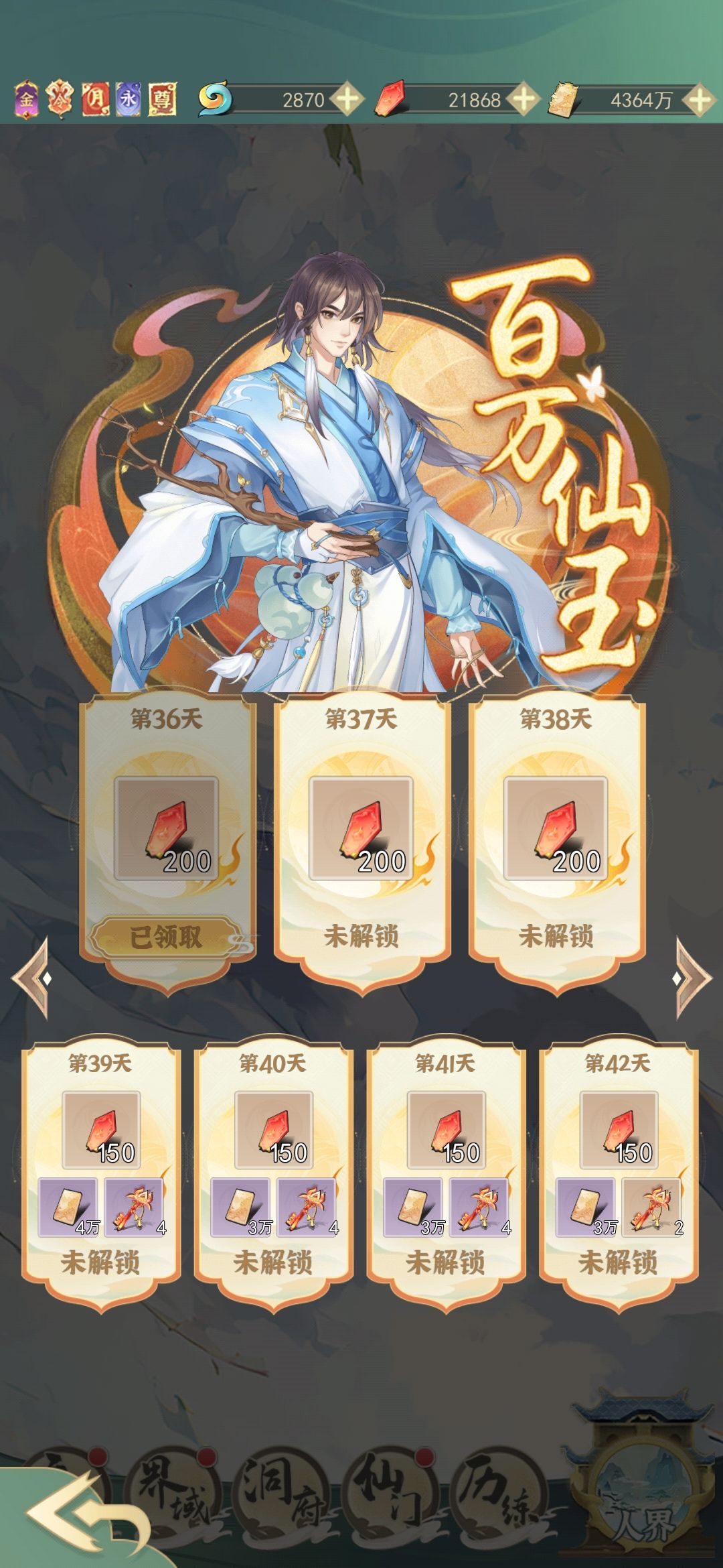 人界有各种新服礼包,用完仙缘码后,会有两万多仙玉。所以,仙玉的分配至关重要。