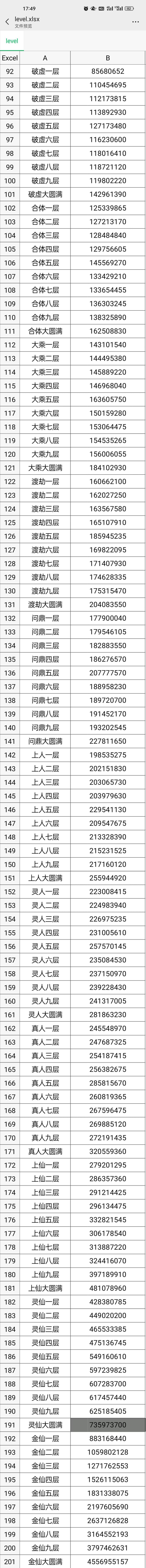 2、钥匙在开服第四天可用,网上很多攻略说今雪160或170再用钥匙飞,但是每个人的情况不一样。下面附上修为图,自己算一下差多少用多少,尽量留钥匙,钥匙越晚用性价比越高。