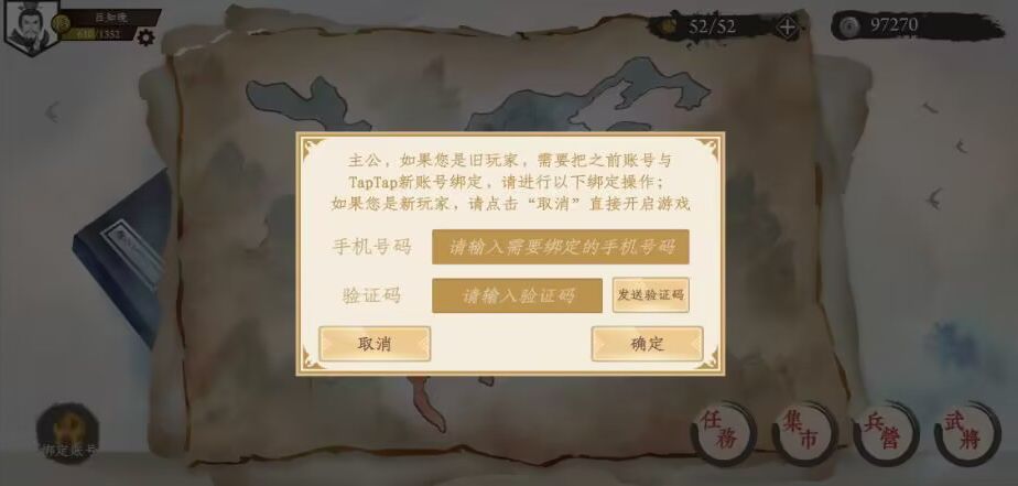 )如果是旧玩家,需要把旧账号(即手机号码)与TapTap新账号进行绑定;