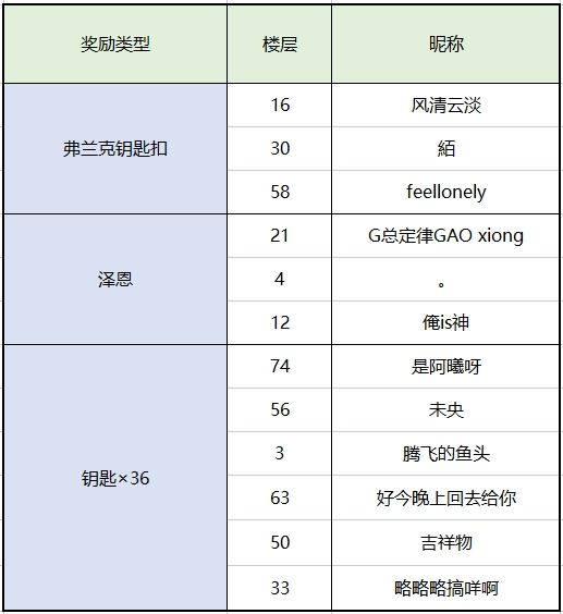 · 在评论中抽选6位玩家赠送钥匙×36