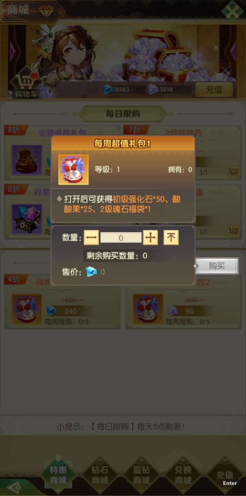 2.强化装备可直接在商城购买强化石,使用银币强化;