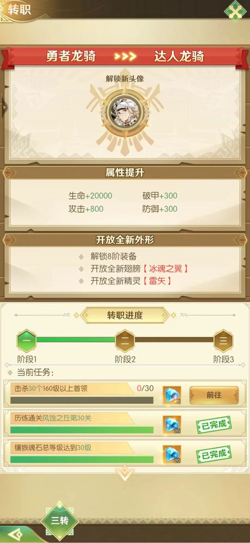 需求条件:220级,达成三转
