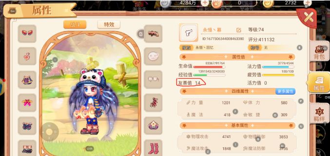 1.怎么看友善值:打开背包在其下方的属性栏中,经验值的下方就是友善值,虽然友善值在这,想必很多玩家也还不知道,因为在属性栏中大家关心的都是自己的暴击率,暴击伤害,命中率,攻击,防御,很少会去注意其他的属性值。