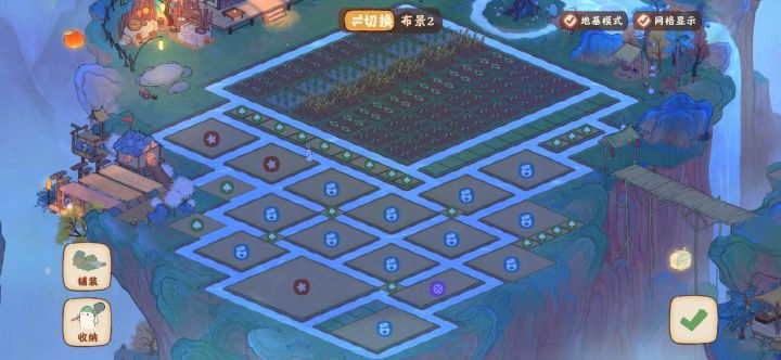 问题:1. 田还是黏在一起。2.不知道后面的经营类建筑占地情况。预留位置可能不够,计划会把编织竹子的移到竹子区。3.学堂可能会移动。