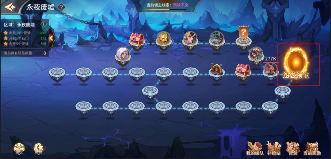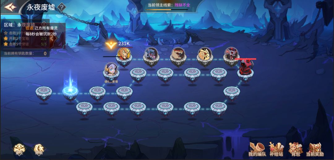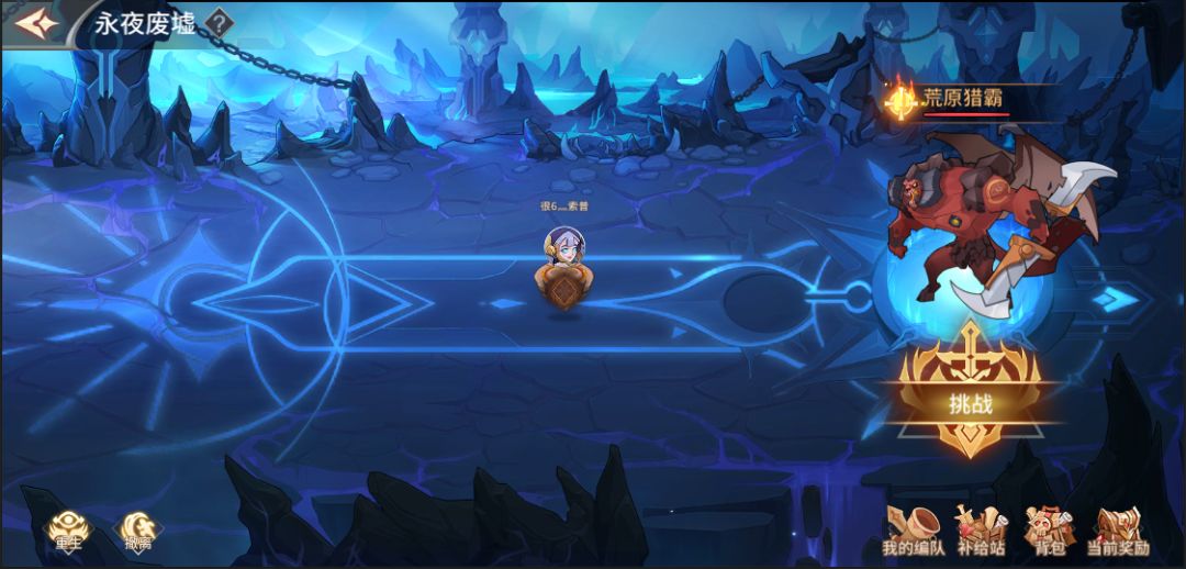 点击“永夜废墟”按钮即可进入玩法主界面,功能主界面根据玩法大致可以分为三个区域;