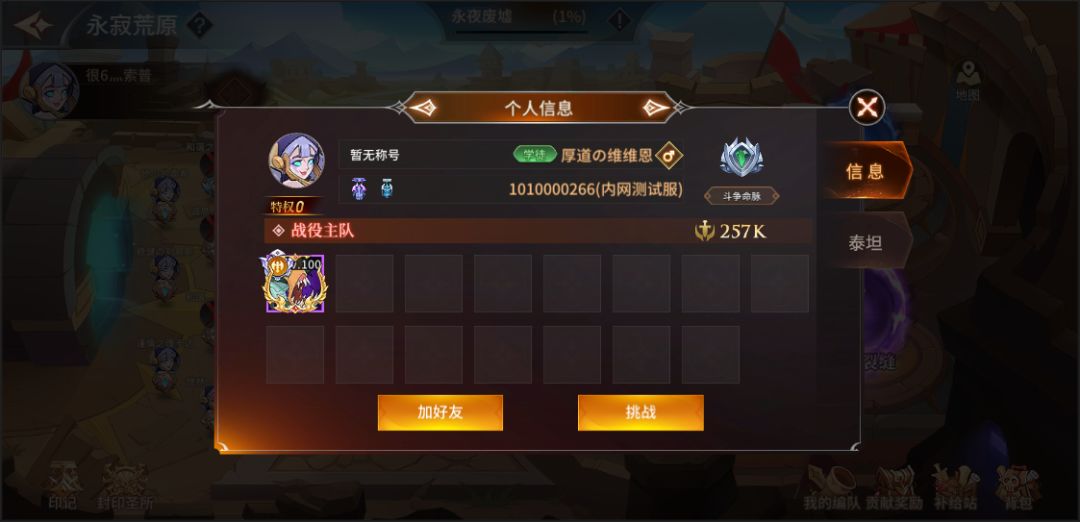 点击玩家展示区内的玩家头像,即可查看对应玩家的个人信息(跨服玩家无法查看)