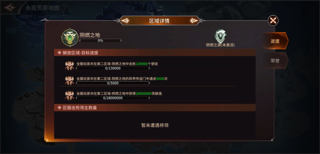 条件三:全服玩家共在第二区域—阴燃之地中获得28000000贡献值