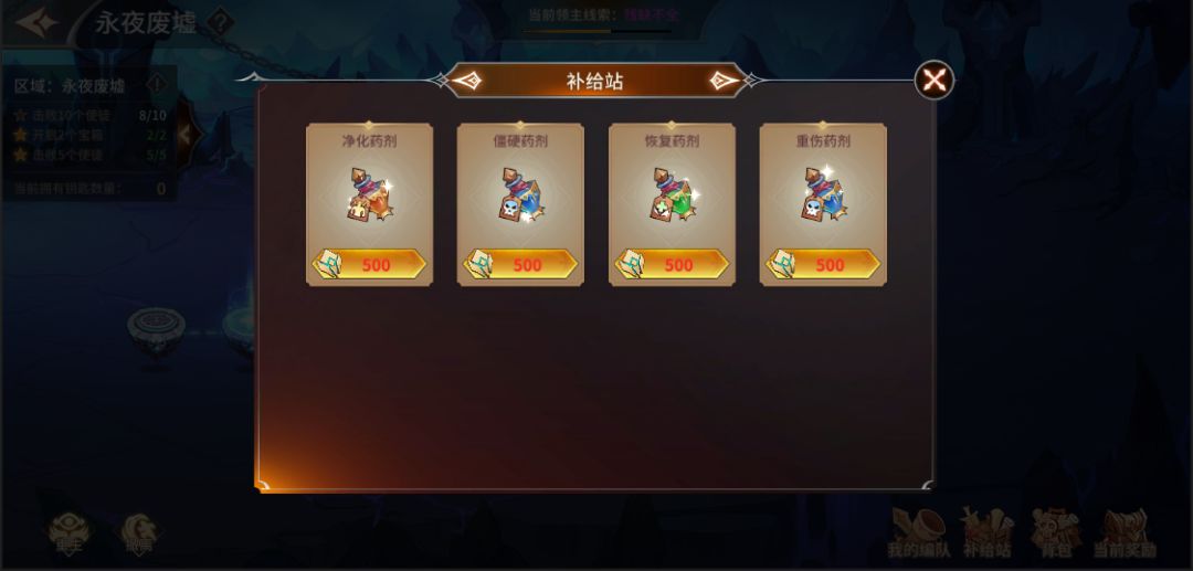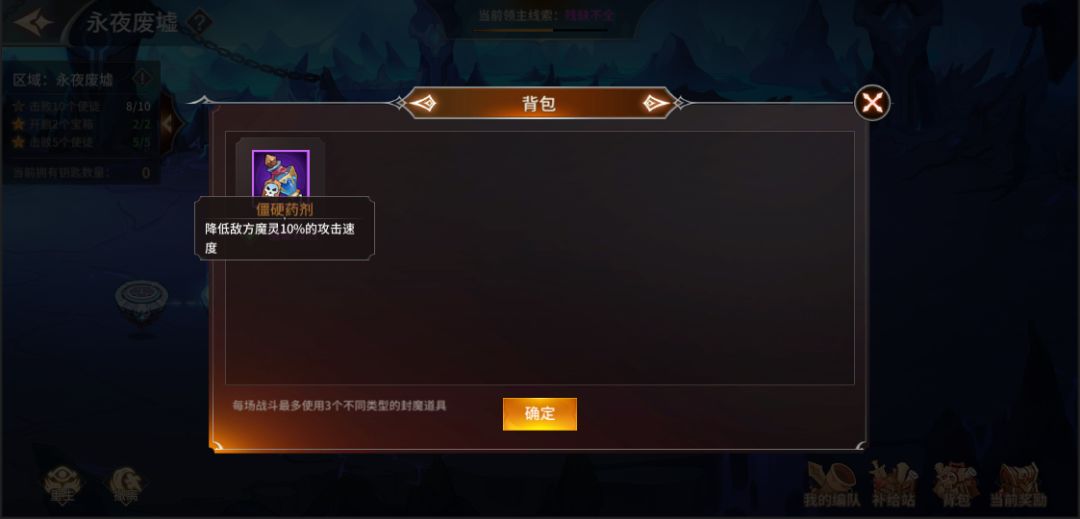 战斗过程中可消耗“道具”提升战力,增加通关的几率,道具可通过战斗、以及补给站购买获得(购买道具需消耗“异界晶石”,“异界晶石”通过永寂荒原战斗获得)