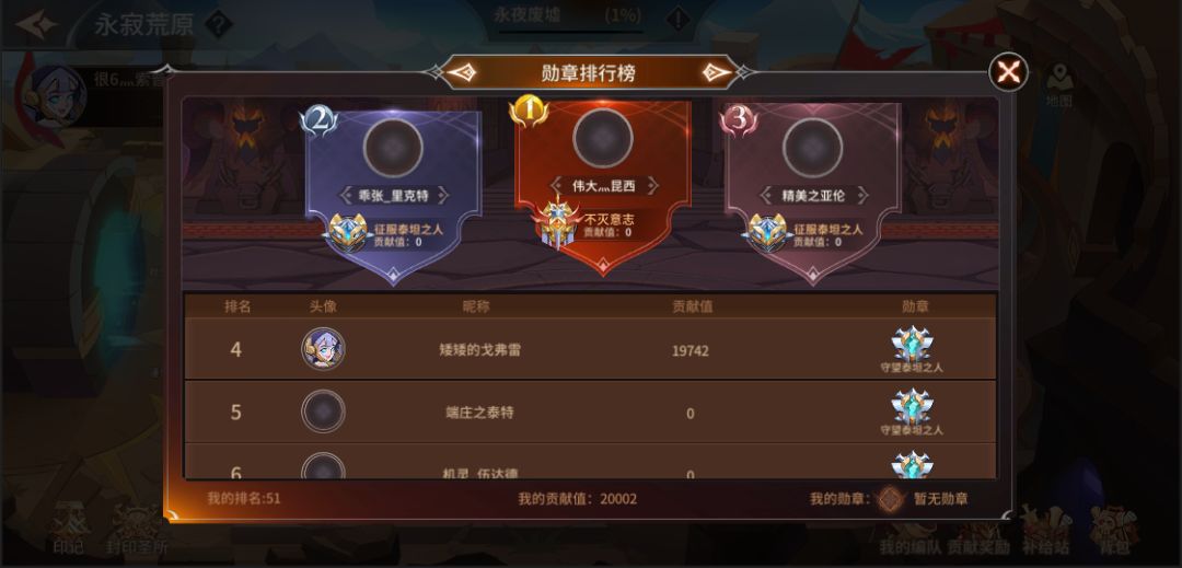 点击可查看参与“永寂荒原”的玩家排名情况