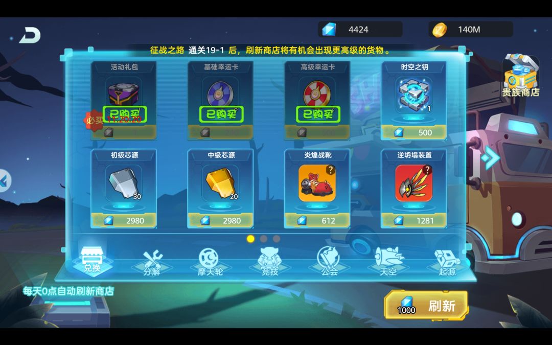 本着和商店一样的原则出现幸运卡,紫色进化液,金币,绿色血清统统买!时空之钥和时空罗盘在资源不缺的情况下购买(后续我会介绍其用途)