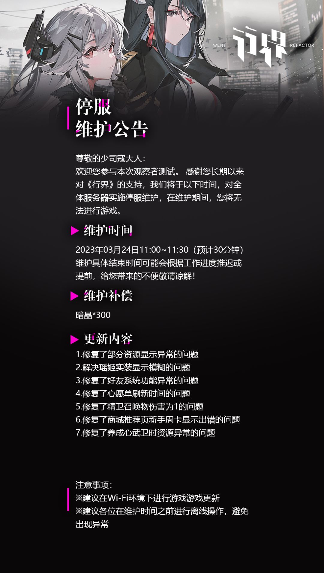 【观察者测试】3月24日维护公告