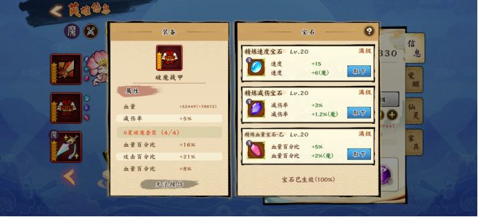 宝石的话肯定是优先双攻双血剩下的可以补上一个暴击率或者两个把暴击率堆到100%提高伤害的期望,剩下的可以选择克制,减伤,速度等等提高针对性以及生存能力。