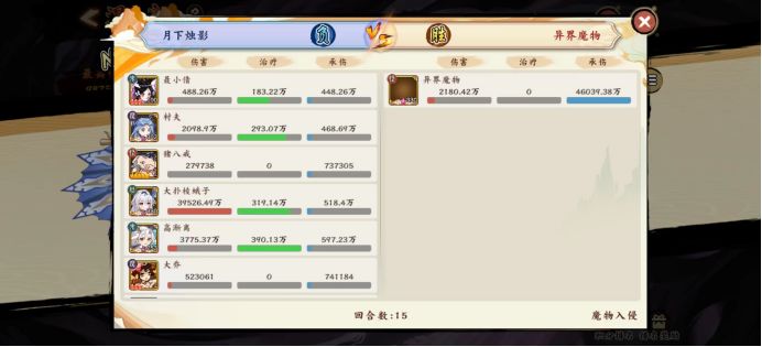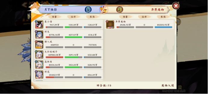 如上,在打魔物的时候,不仅觉1春花自己提供了将近杨娥的0.5总伤害量,也大幅提升了杨娥诸葛高渐离小倩的伤害,所以做一个春华对于打桩的提升是非常之大的。