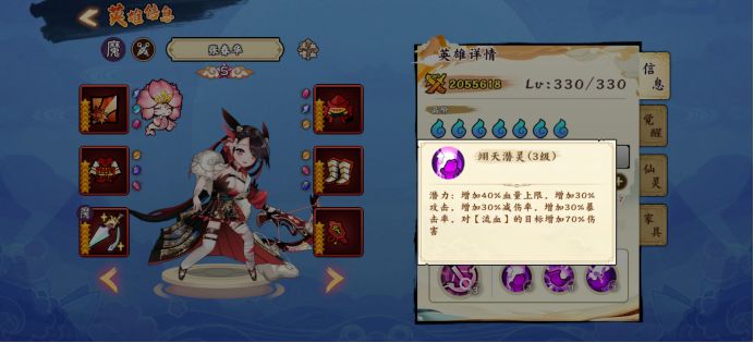 大招倍率625%相当不错,重要的是锁定攻击力最高的四个角色造成伤害,并给全体施加流血debuff,以及给我方施加增益buff。锁头技能可以针对对方高攻击的角色,春花伤害足够高的话可以直接秒掉对方的输出,在pvp方面非常有优势,而嗜血技能则可以增加我方其他角色的伤害,无论是pvp还是pve当主c或者副c都非常不错。