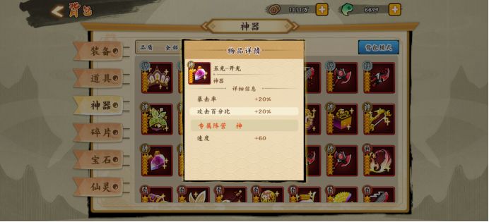 对于神器方面,有能力的话可以上氪金神器,无论是专属神器的攻血百分比加暴击率以及聂隐娘的双爆加攻击百分比以及花木兰的的神器加暴击率精准百分比都是非常不错的,带专属的话,正好弥补了春华自身血量低的基础面板,增强了站场能力(毕竟活着才能输出)聂隐娘的则是让输出更加的暴力,而木兰神器提供的百分比精准率能使打桩的伤害更高。