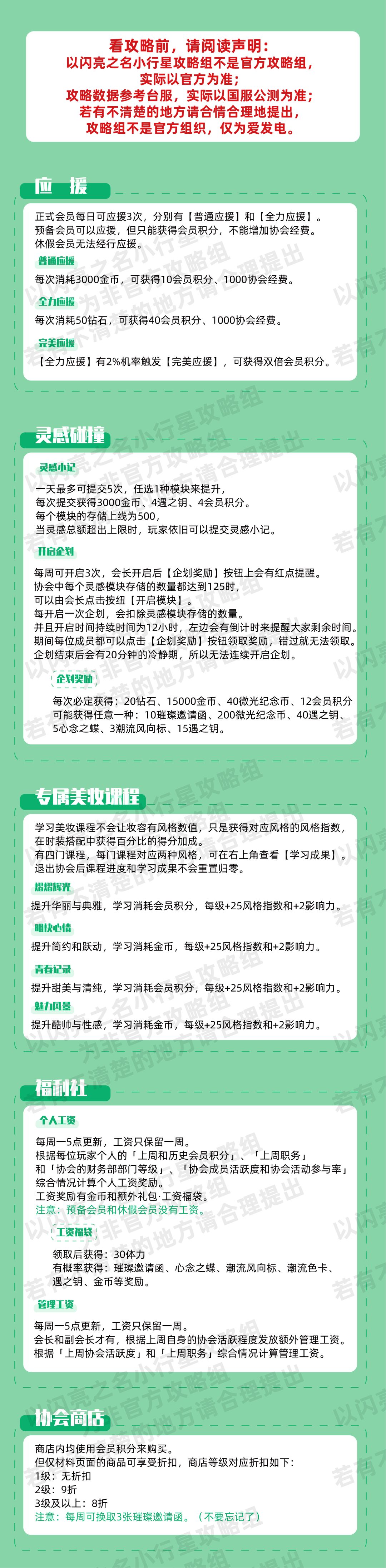位置在[主界面—协会],退出无冷静期,亦不会扣除和冻结会员积分,介绍包括玩法攻略和奖励统计,其中奖励统计中企划和应援只统计必定获得奖励,注意每周可以兑换三张璀璨邀请函,不要忘记啦。