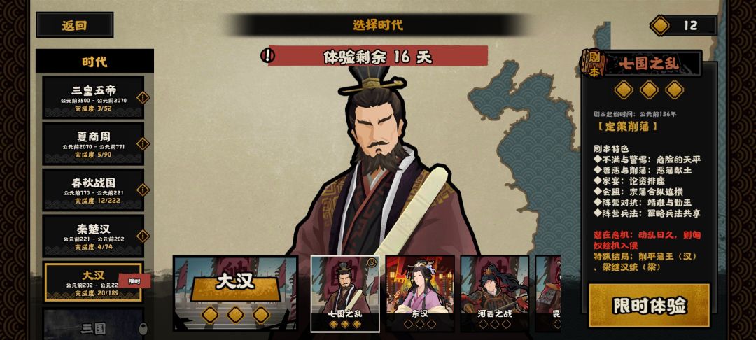 在七国之乱剧本中我们首先将化身汉皇,统领大汉势力。