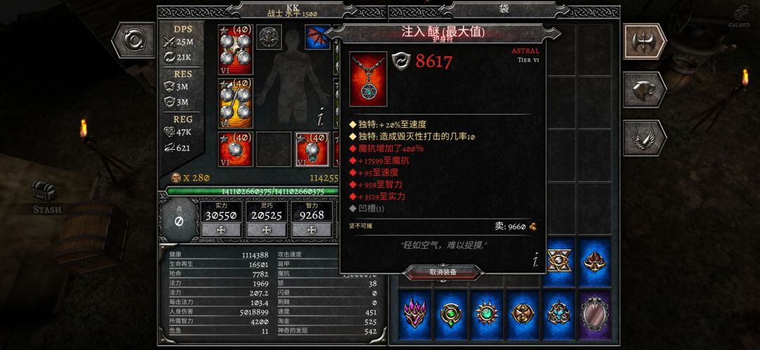 我为了堆一些魔抗,换成了加移速的项链,这个看个人喜好吧。(因为没打到好的,先凑合用是真的)