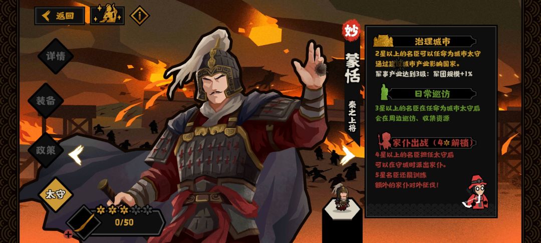 “监修驰道”政策是蒙恬独特的新机制,以科技点增加攻占进度和军规,这也表明了蒙恬适合玩科技流。