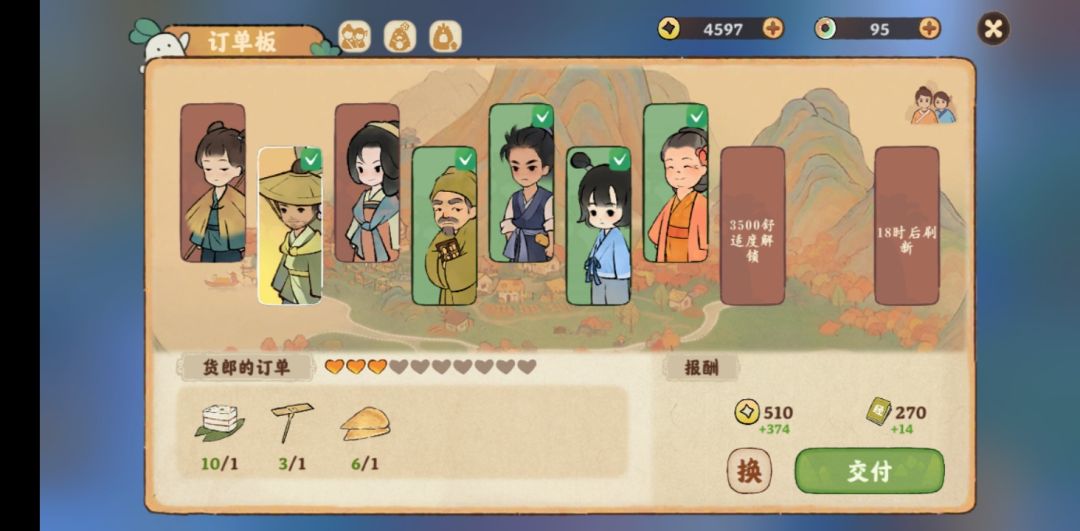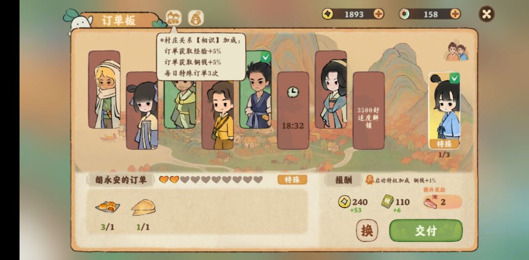 注:刷新特殊订单选择奖励为两份猪肉的订单。